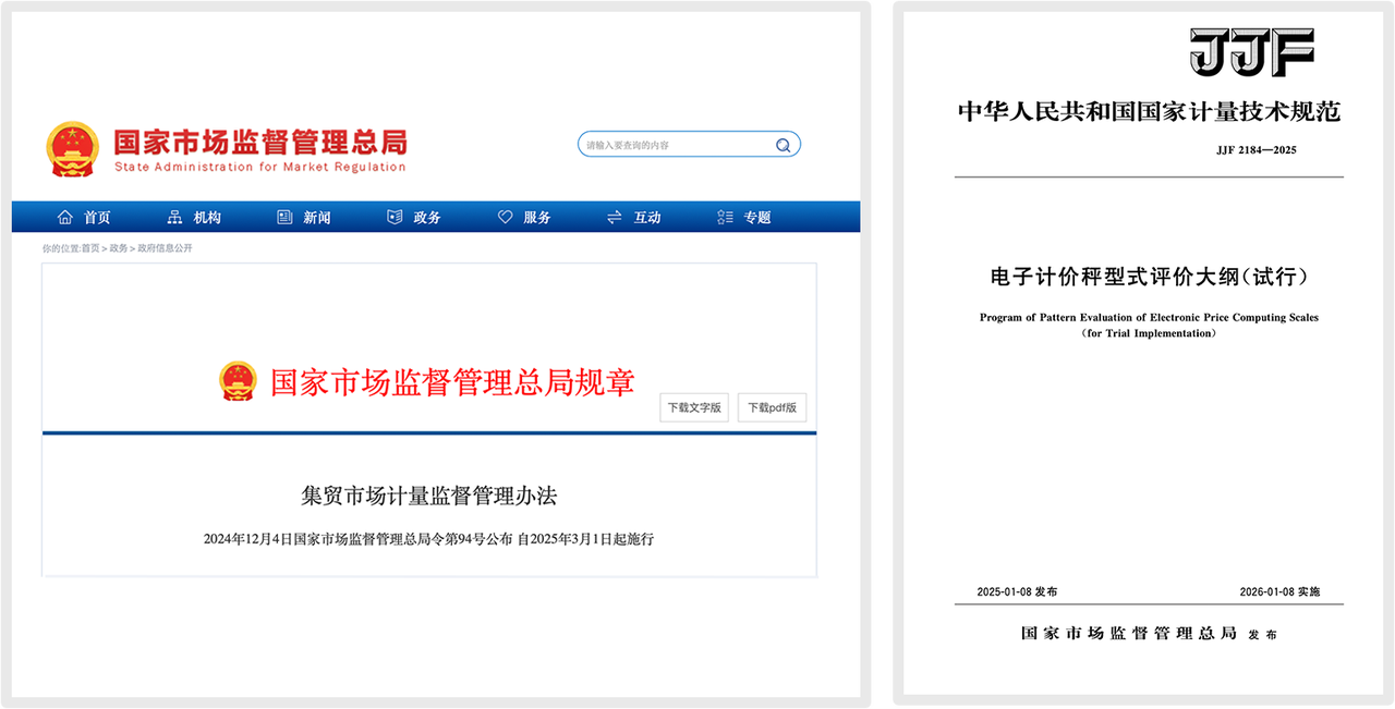 為應(yīng)對農(nóng)貿(mào)市場存在的計量作弊問題,國家市場監(jiān)督管理總局近期出臺了一系列強(qiáng)制性法規(guī)與技術(shù)規(guī)范,標(biāo)志著行業(yè)將進(jìn)入一個全新的、以技術(shù)防作弊為核心的合規(guī)時代。本文將解析《集貿(mào)市場計量監(jiān)督管理辦法》(總局令第94號)及《電子計價秤型式評價大綱(試行)》(JJF 2184-2025)的核心要求,這并非一次簡單的規(guī)則重申,而是電子計價秤產(chǎn)品本身發(fā)起的一場產(chǎn)業(yè)升級。通過設(shè)定技術(shù)要求與明確的法律時限,系統(tǒng)性地重塑產(chǎn)品的設(shè)計邏輯與生產(chǎn)標(biāo)準(zhǔn)。